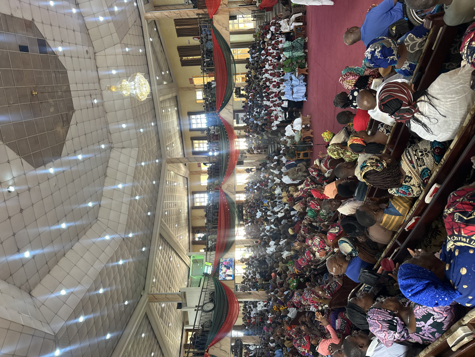 This image captures a large indoor gathering within a spacious event hall in Jos, Nigeria