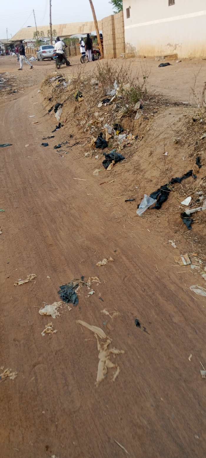 - "This image depicts an unpaved, reddish-brown dirt road in Nassarawa, Nigeria, characterized by tire tracks and scattered refuse" by FM-Rxlpl1, licensed under CC BY 4.0