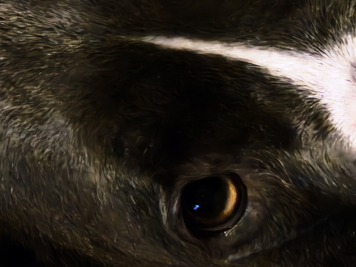 - "A close-up image reveals the eye of an animal, possibly a skunk, judging by the dark fur and a distinct white stripe above the eye" by FM-n22Rc2, licensed under CC BY 4.0
