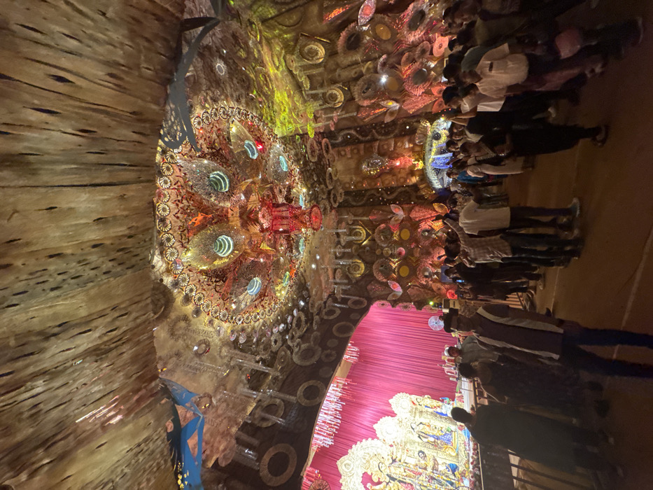- "The image displays a crowded, elaborately decorated interior space, likely a temporary structure (pandal) for a festival, located in Bidhannagar, India" by FM-KoaHv1, licensed under CC BY 4.0