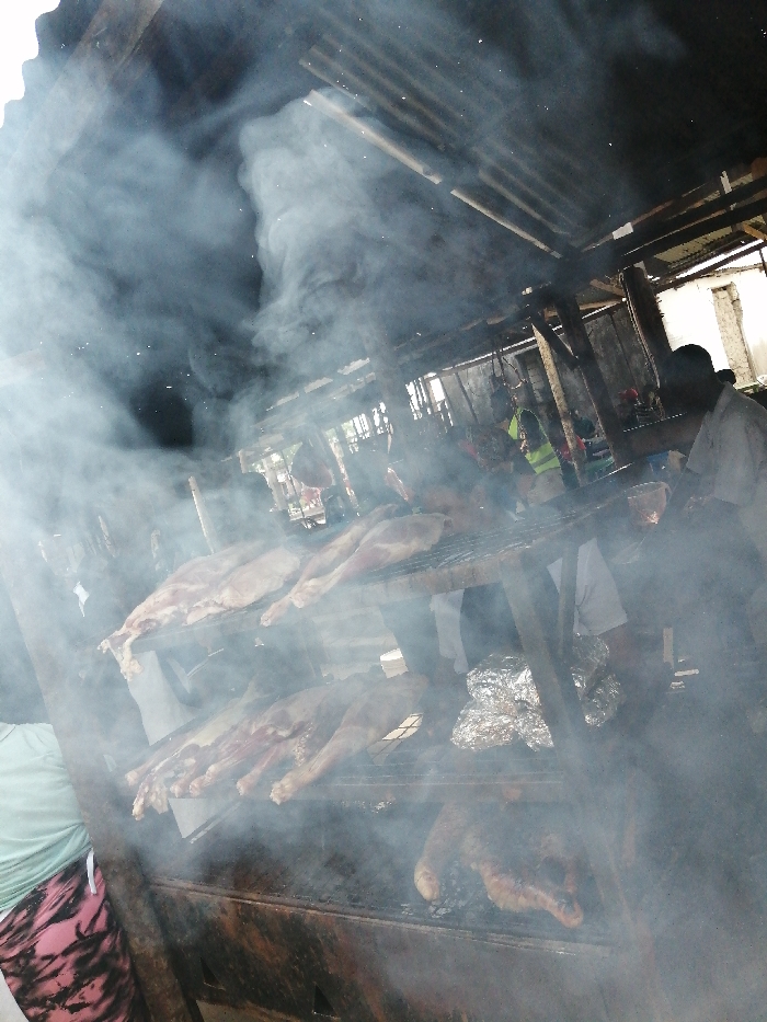 - "The scene depicts an active outdoor or semi-enclosed cooking operation in Machinjioni, Tanzania, permeated by dense, white-grey smoke" by FM-nuac32, licensed under CC BY 4.0