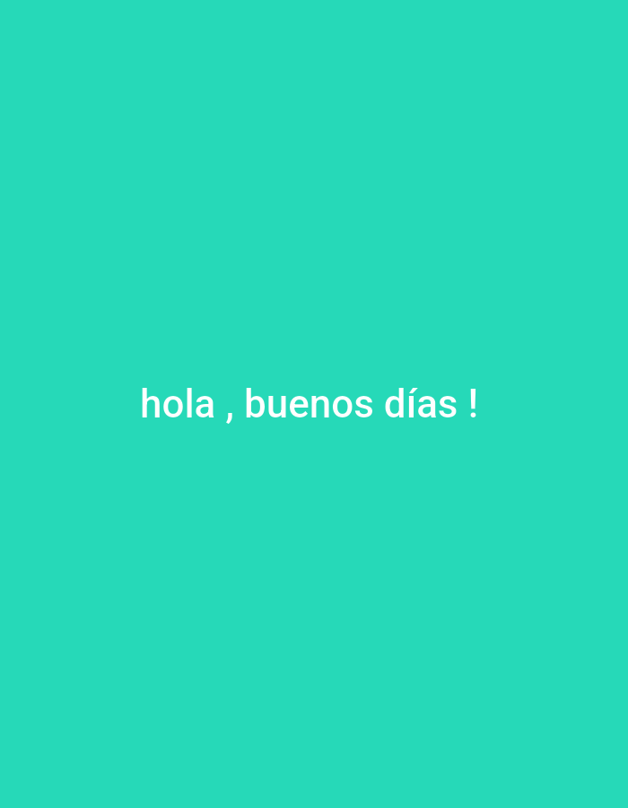 The image displays a uniform, solid teal-colored background. Centered horizontally and positioned in the lower middle third vertically, white sans-serif text reads "hola , buenos días !". No discernible people, physical objects, or environmental details are present. The scene is a digital graphic or screen display, with no identifiable location in the city of Unknown, Unknown.