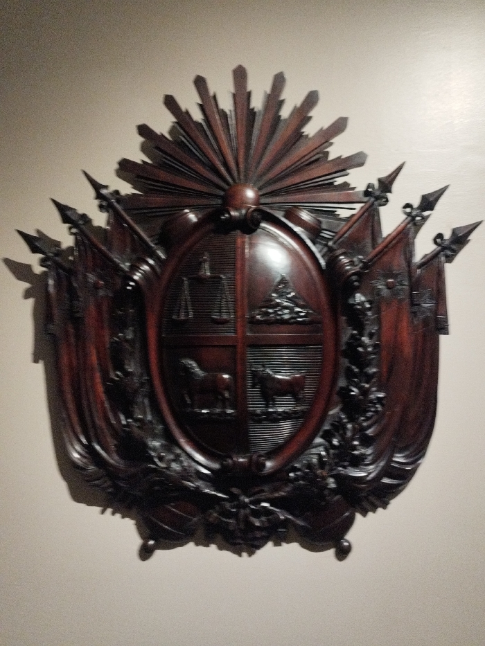 - "A dark wood coat of arms hangs against a light wall" by FM-b3qRJ3, licensed under CC BY 4.0