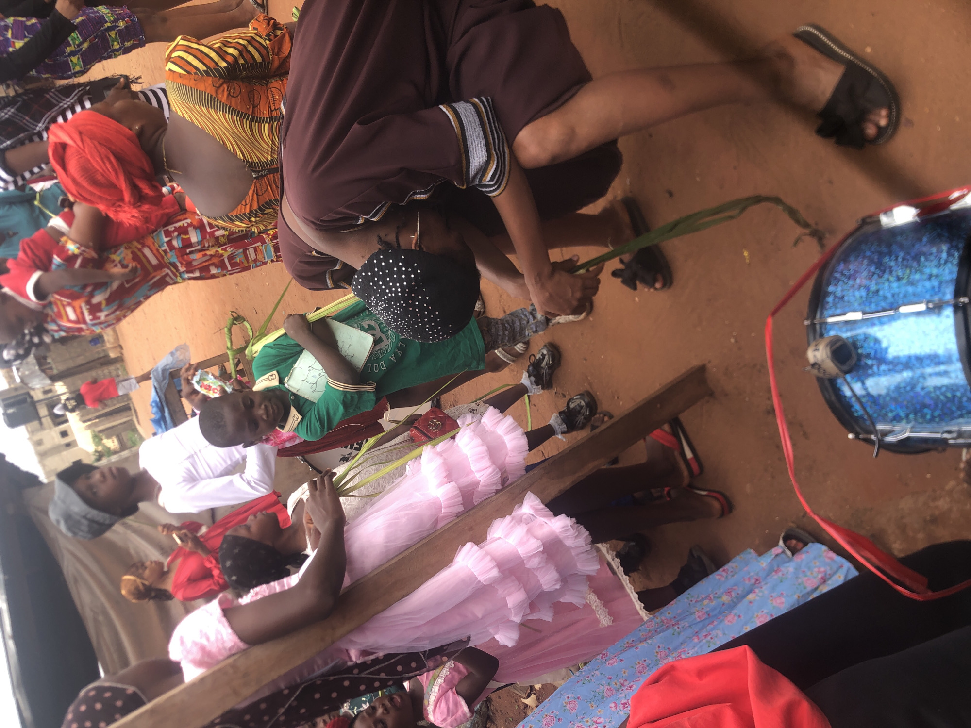 group of people in Ukwu-Abwa, Nigeria, outdoors on a red dirt surface