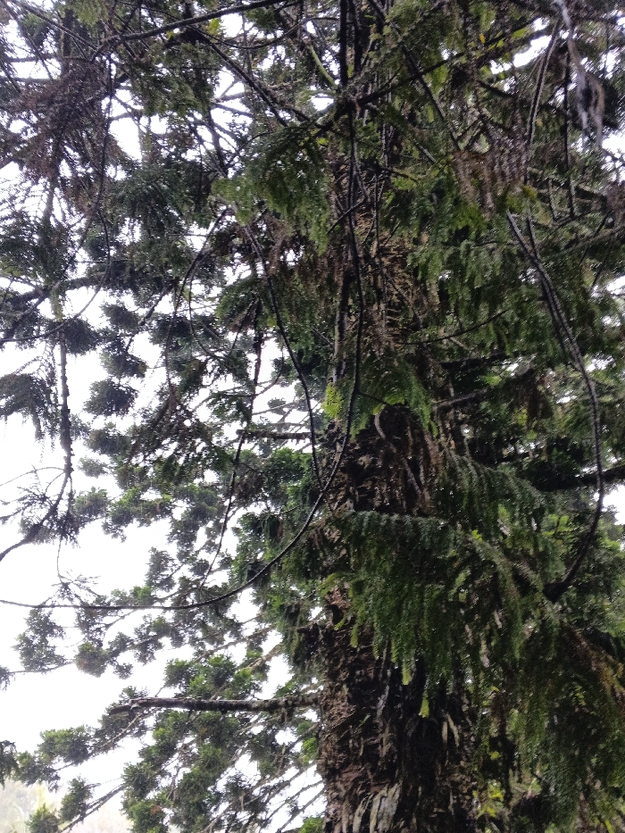 - "A dense, towering tree dominates the frame, its trunk covered in thick, dark bark and patches of vibrant green moss" by FM-XIXKl2, licensed under CC BY 4.0