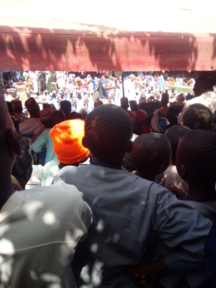 This image depicts an outdoor gathering in the city of Gawuna, Nigeria