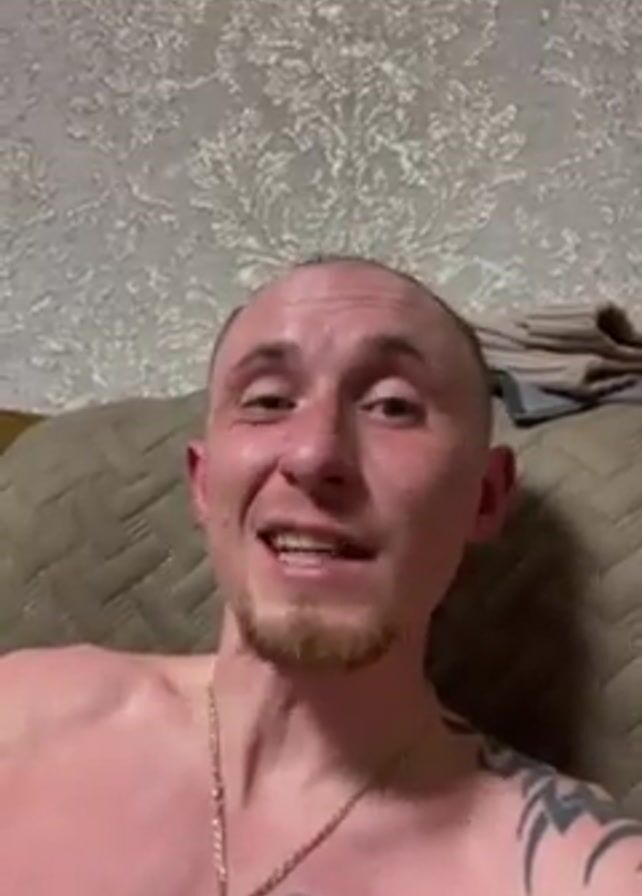 A man is sitting in front of a gray and white wallpapered wall. He is shirtless, wearing a thin gold chain with a pendant. He is looking at the camera and smiling. There is a gray sofa behind him with some clothes folded on the back. He is asking a question.