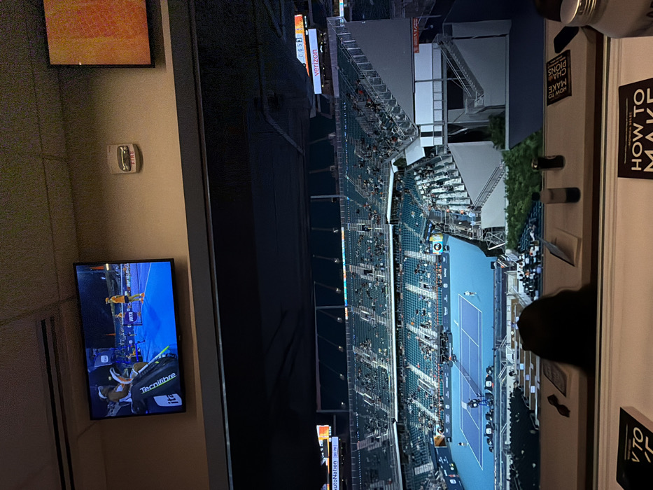 - "The image depicts an elevated view from an indoor suite or box overlooking a large outdoor tennis stadium at night, identified as Hard Rock Stadium in Miami Gardens, Florida, United States of America" by FM-kyXu53, licensed under CC BY 4.0