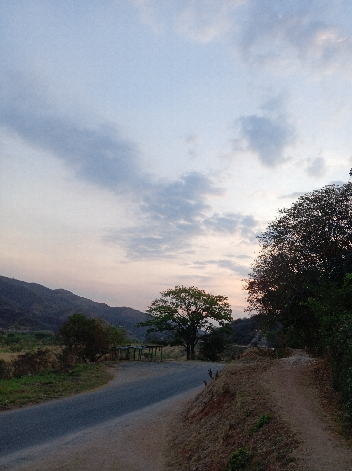 The image captures an outdoor landscape in Sabaneta, Venezuela, during either dawn or dusk