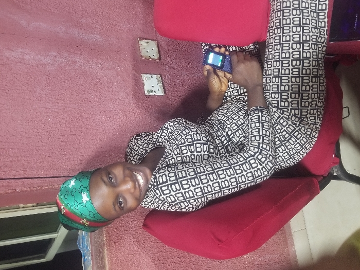 An individual is depicted seated indoors in Onitsha, Nigeria