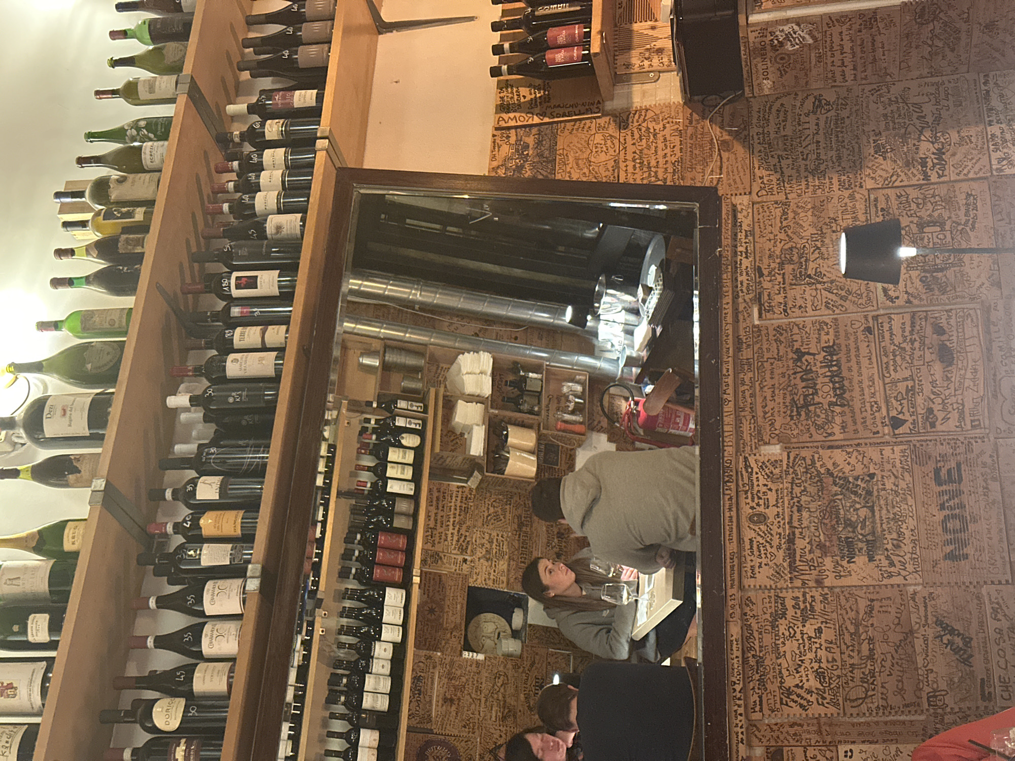 - "The scene depicts the interior of a Roman restaurant or wine bar in Rome, Italy, evidenced by handwritten notes on the walls explicitly stating "Cucina Romana," "Vino dell'Amore," and "Roma," alongside a selection of predominantly Italian wines" by FM-jTO4l2, licensed under CC BY 4.0