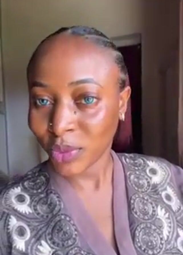A woman with light blue eyes is the primary focus of the video