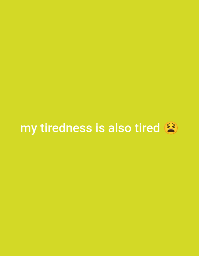 - "A yellow background displays the white text "my tiredness is also tired"" by FM-HxAtG3, licensed under CC BY 4.0