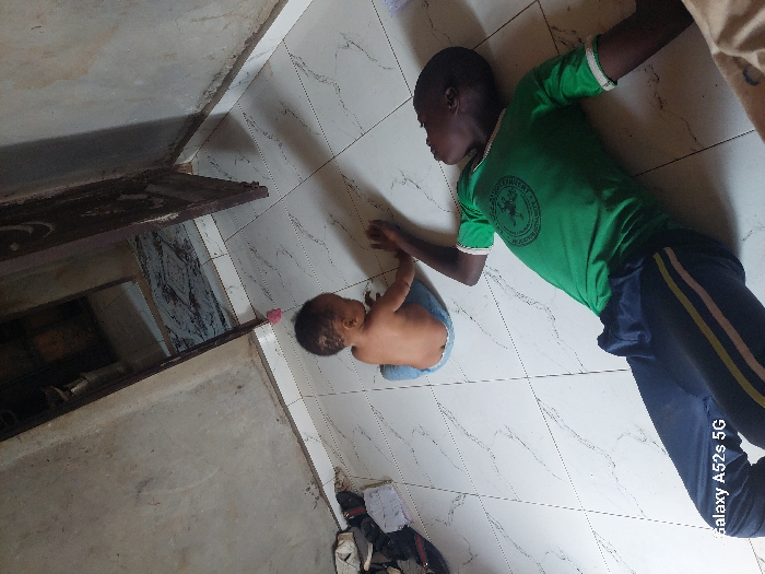 - "The scene, located indoors in Awkuzu, Nigeria, depicts two male children within a room featuring light greyish-beige walls exhibiting dirt and wear, particularly at the base and top edges" by FM-3nANH2, licensed under CC BY 4.0