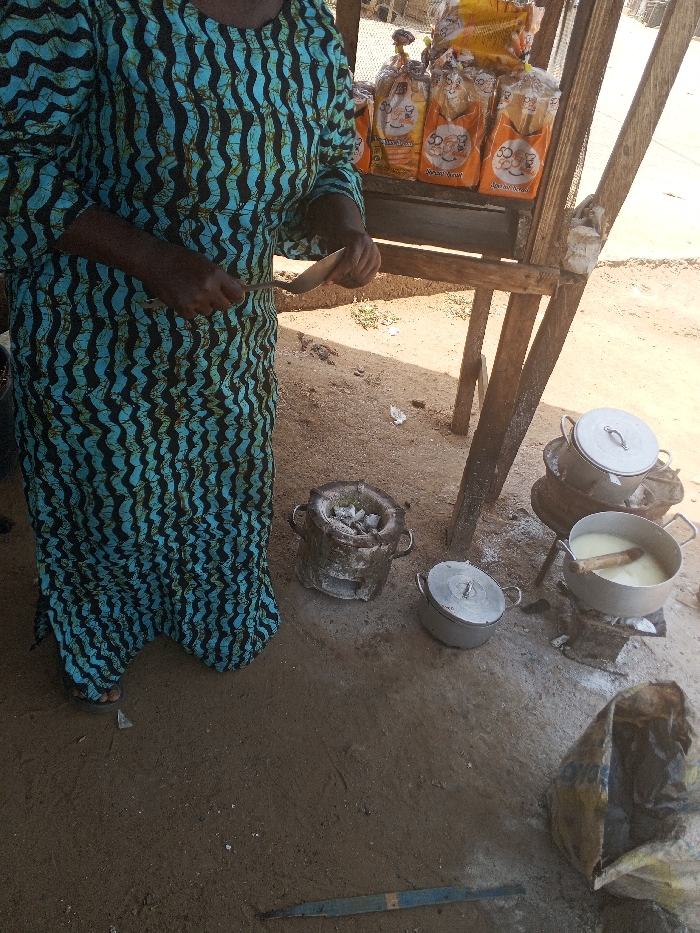 The image captures an outdoor, informal food and bread vendor setup in Ilorin, Nigeria