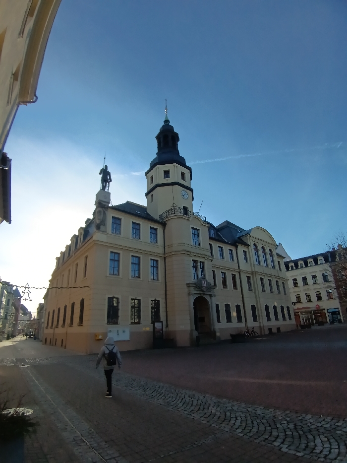 - "The image displays an outdoor urban scene centered on the Town Hall (Rathaus) of Crimmitschau, Germany, specifically located at Markt 27" by FM-rFWs12, licensed under CC BY 4.0