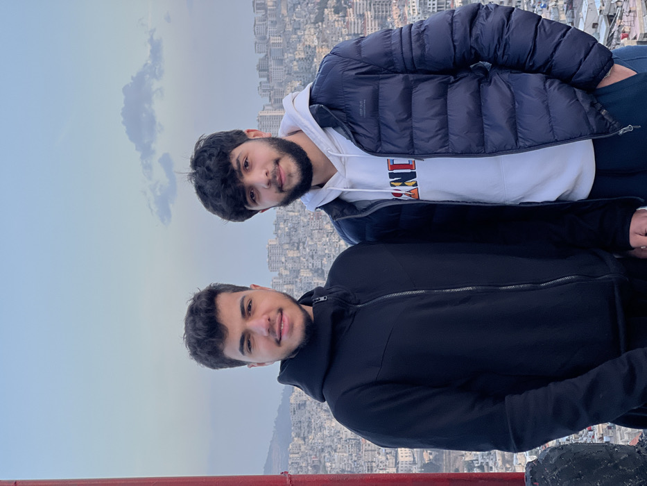 - "The image displays two young adult males standing outdoors from an elevated perspective overlooking the city of Qudsaiya, Syria" by FM-NiDCC3, licensed under CC BY 4.0