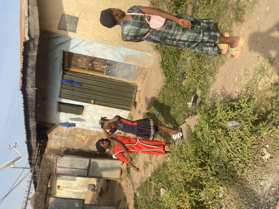 The image captures an outdoor residential scene in Yelwa, Nigeria, under clear daylight conditions