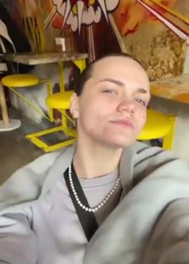 A woman with short, slicked-back hair is the primary subject of a selfie-style video