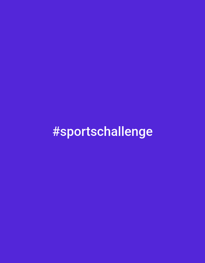 The image displays a solid royal purple background. Centered within this monochromatic field is the white alphanumeric text "#sportschallenge". No people, additional subjects, or objects are visible. No actions or interactions are depicted. The scene is located in the city of Yazdach, Bulgaria.