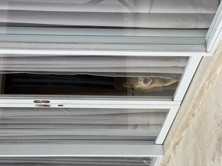 - "The image depicts an orange tabby cat observed through a partially open white-framed glass sliding door in Munggu, Indonesia" by FM-37mOy1, licensed under CC BY 4.0