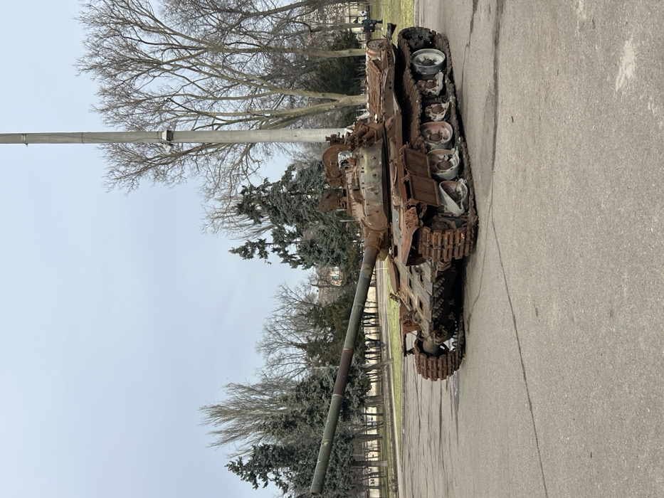 - "The scene depicts a severely damaged and heavily rusted Russian T-series main battle tank, likely a T-72 variant, positioned on a paved surface in Dumska Square, Odesa, Ukraine" by FM-CMDbi2, licensed under CC BY 4.0