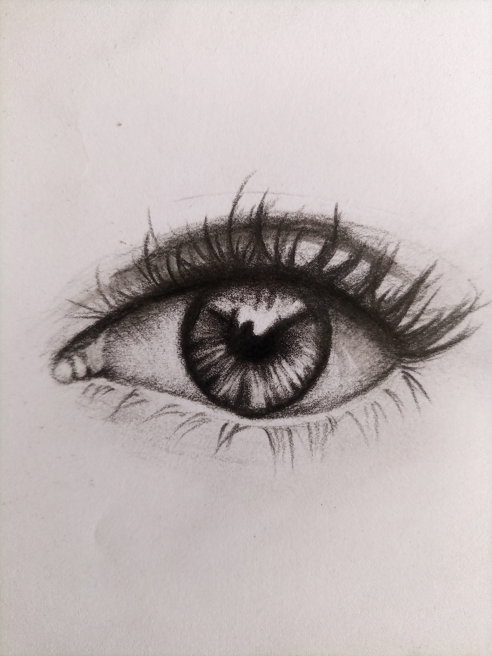 - "This is a detailed monochromatic drawing of a single human eye, rendered in graphite or charcoal on white paper" by FM-6dl0n1, licensed under CC BY 4.0