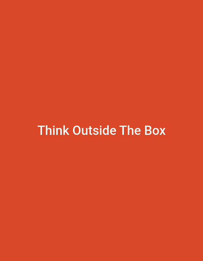 The image displays white, sans-serif text reading "Think Outside The Box" centered horizontally and vertically on a solid, uniform orange background. No people, discernible objects, actions, or environmental features are present. The location depicted is not determinable from the image data, therefore, no specific location in the city of Unknown, Unknown can be identified.