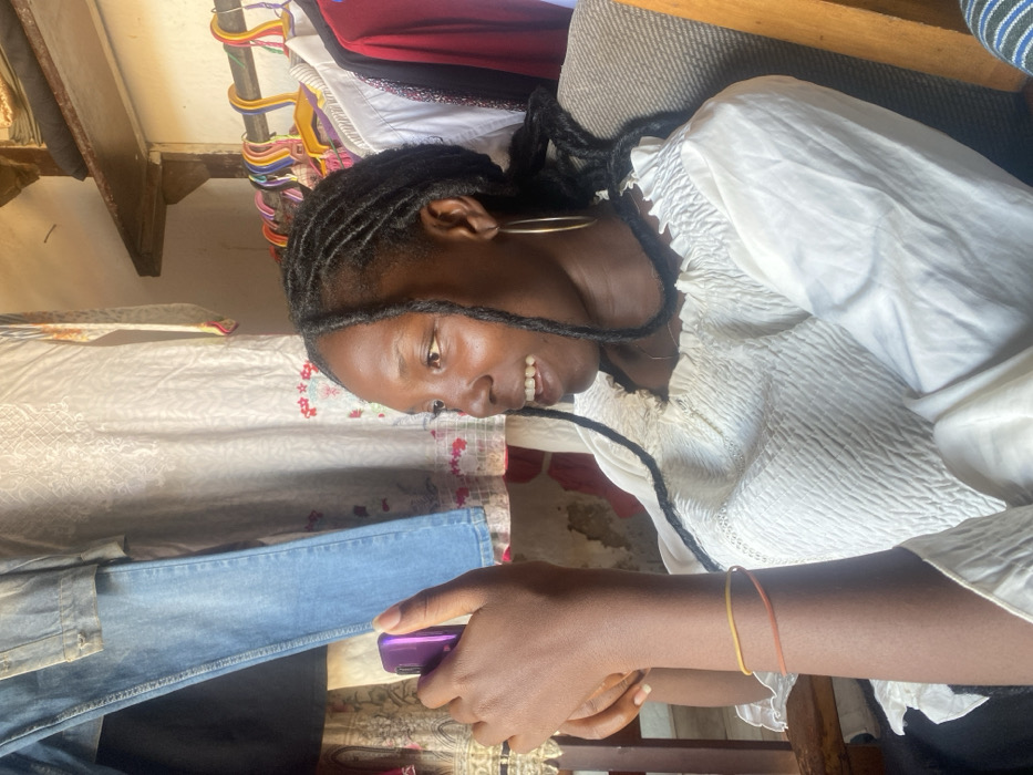 - "A young Black female is seated, captured in a mid-shot from her left side, actively engaged with a purple mobile phone held in her right hand" by FM-iTFf52, licensed under CC BY 4.0