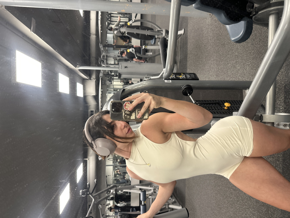 This image depicts a female in an indoor commercial gym, located in Santa Monica, United States of America