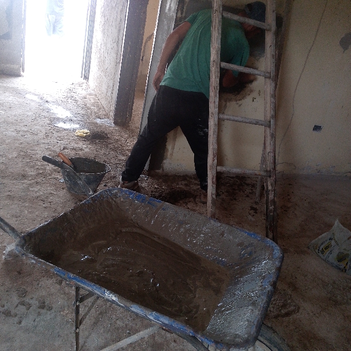 The image depicts an indoor construction or renovation scene in La Tagua, Venezuela