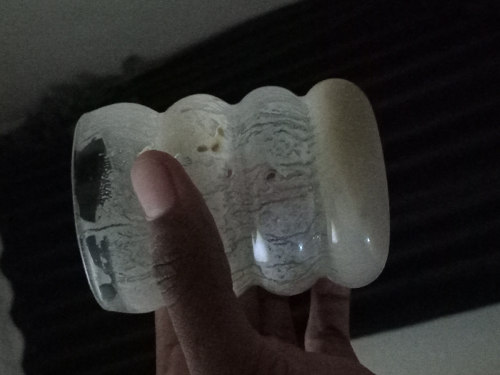 - "A person holds a translucent, cylindrical object with scalloped edges and textured, marbled patterns inside" by FM-9cYG12, licensed under CC BY 4.0