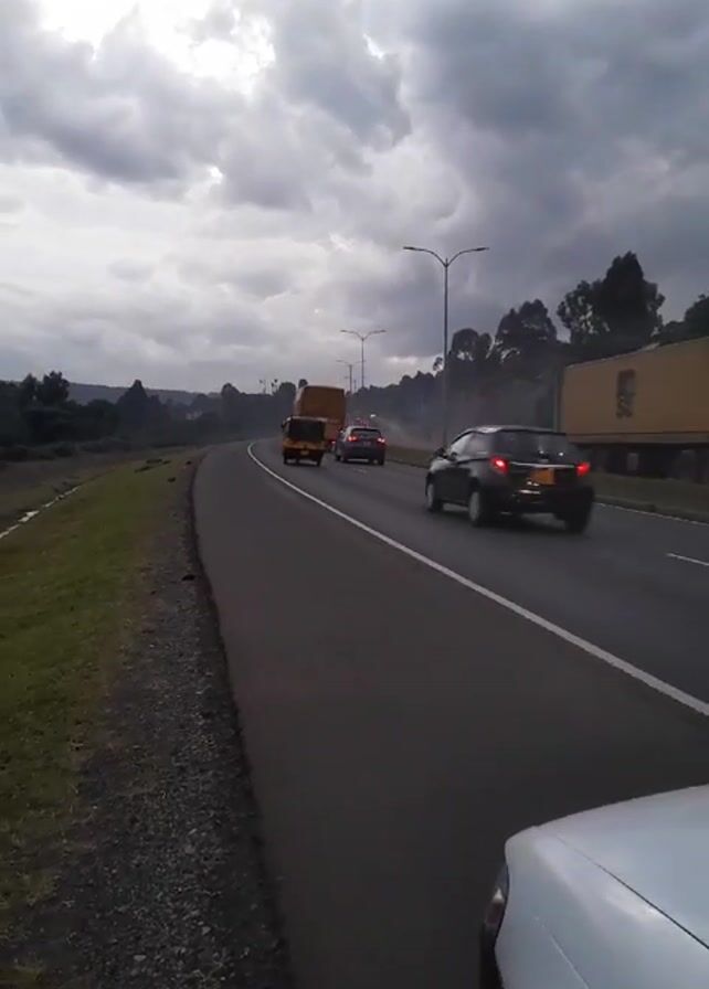Here's a detailed description of the video: The video shows a highway on an overcast day