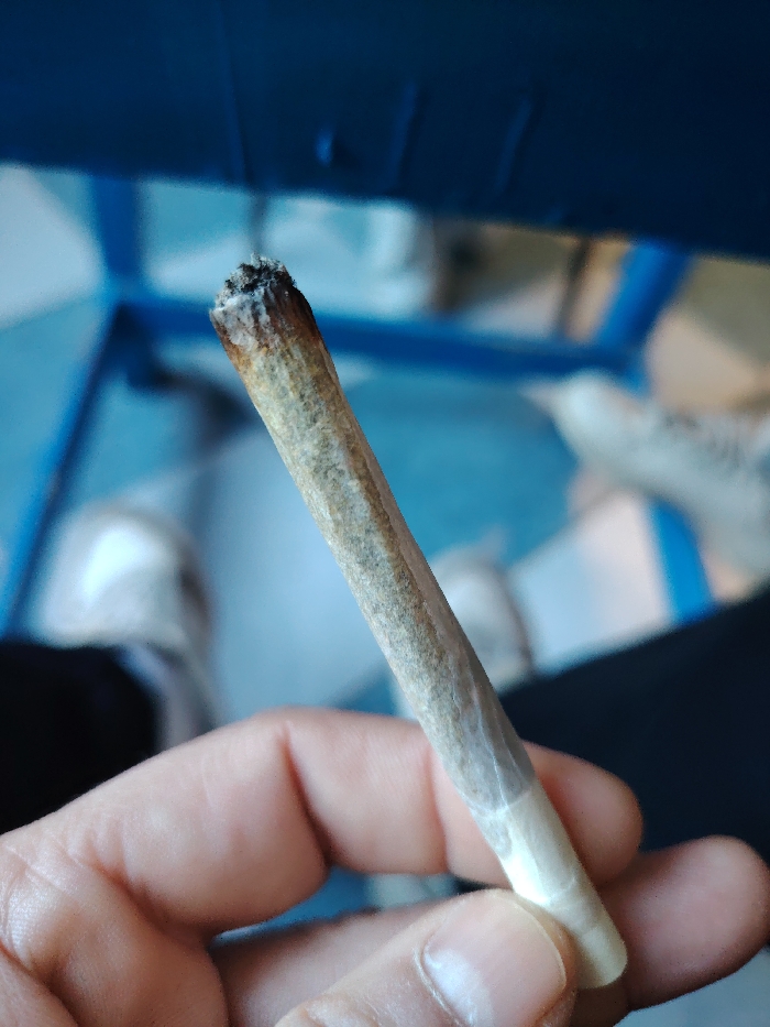 - "A hand holds a partially smoked rolled cigarette or marijuana joint, lit at the end" by FM-10g0q2, licensed under CC BY 4.0