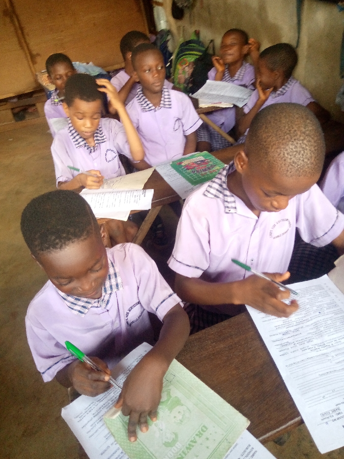 The image depicts a classroom scene at Good Kids Montessori school in Onitsha, Anambra State, Nigeria