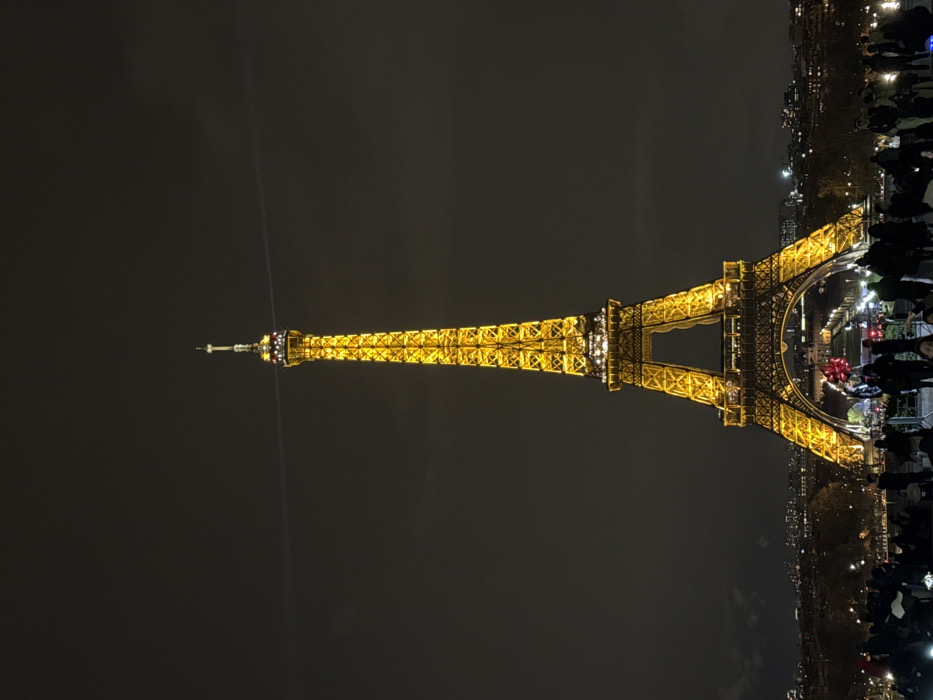 - "A night-time photograph captures the Eiffel Tower, brightly illuminated in golden light, centered against a dark, overcast sky" by FM-bhlUL2, licensed under CC BY 4.0