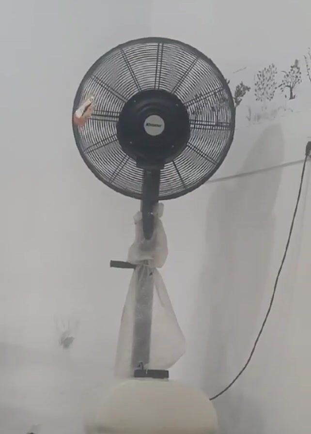 - "black Krizbow misting fan running in a room" by FM-WmpkI3, licensed under CC BY 4.0