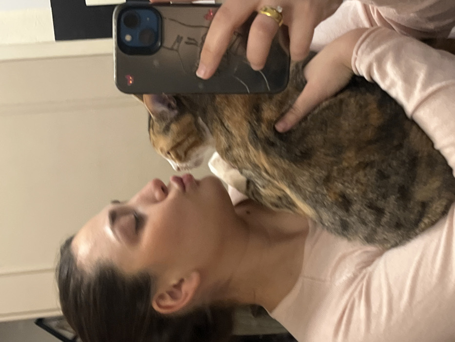 - "The image displays a mirror selfie of an adult female holding a domestic cat in an indoor setting" by FM-BUoKh2, licensed under CC BY 4.0