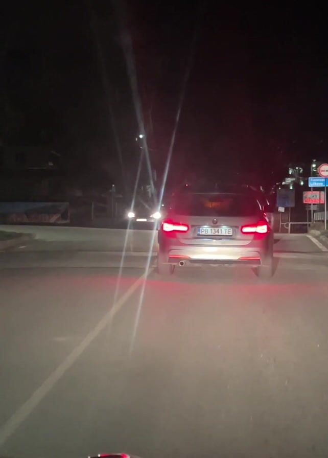 The video, shot at night from the perspective of a driver, depicts a silver BMW with Italian license plates ahead, waiting at an intersection