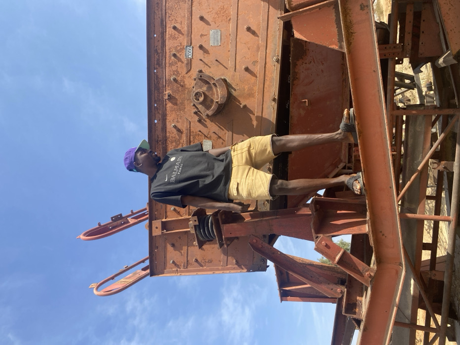 An individual is depicted standing on large, oxidized industrial machinery under a clear blue sky in Barakin Akawo, Nigeria