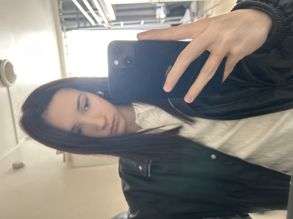 - "A young female subject, with long, dark, straight hair parted centrally, is depicted in a mirror selfie" by FM-CghfR2, licensed under CC BY 4.0