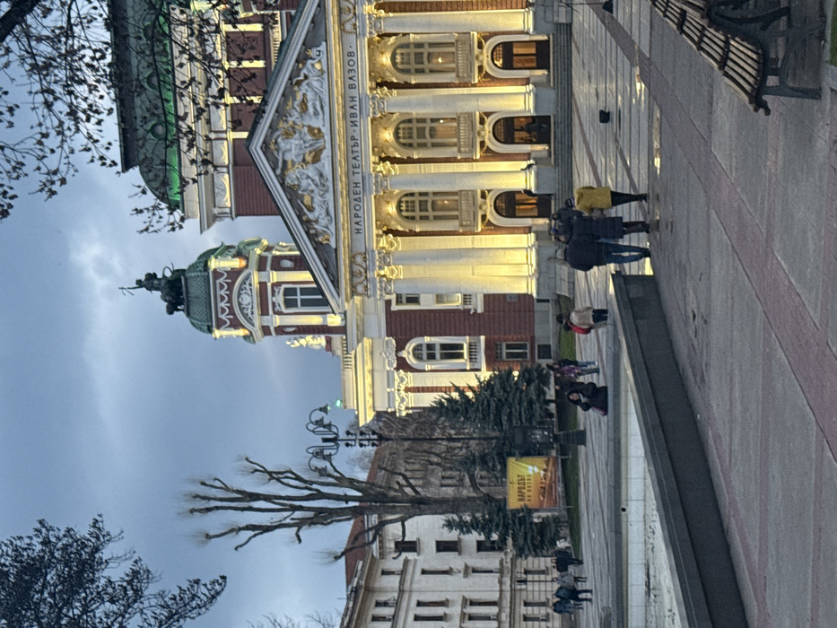 - "The image captures the Ivan Vazov National Theatre in Sofia, Bulgaria, during dusk or early evening hours, illuminated by warm yellow artificial lights" by FM-zlgzM2, licensed under CC BY 4.0