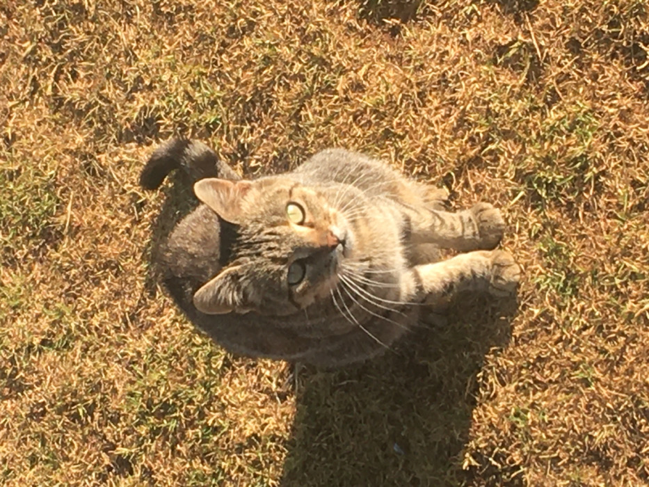 - "A tabby cat lies on dried grass, basking in sunlight" by FM-3ILLF2, licensed under CC BY 4.0