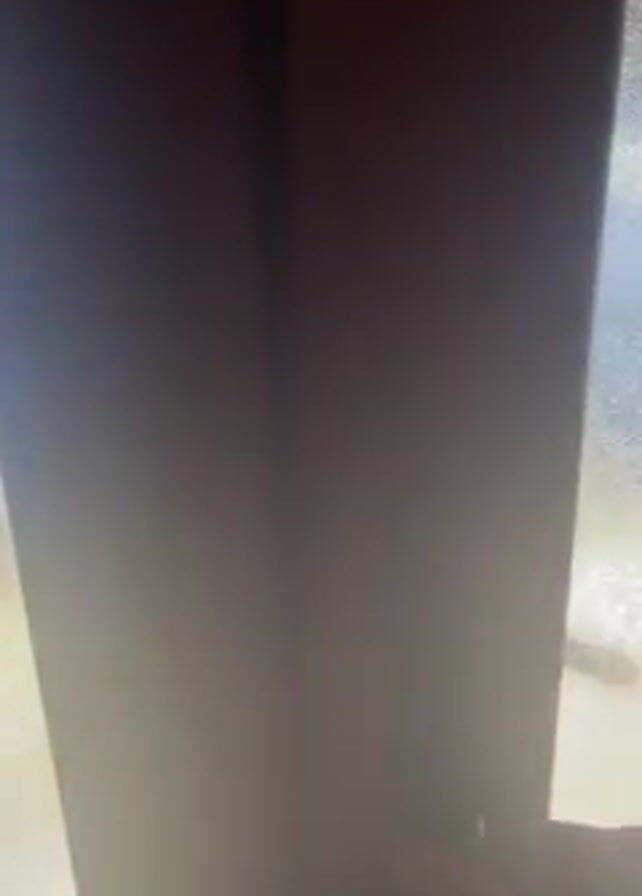 A person opens a dark-colored door from the inside