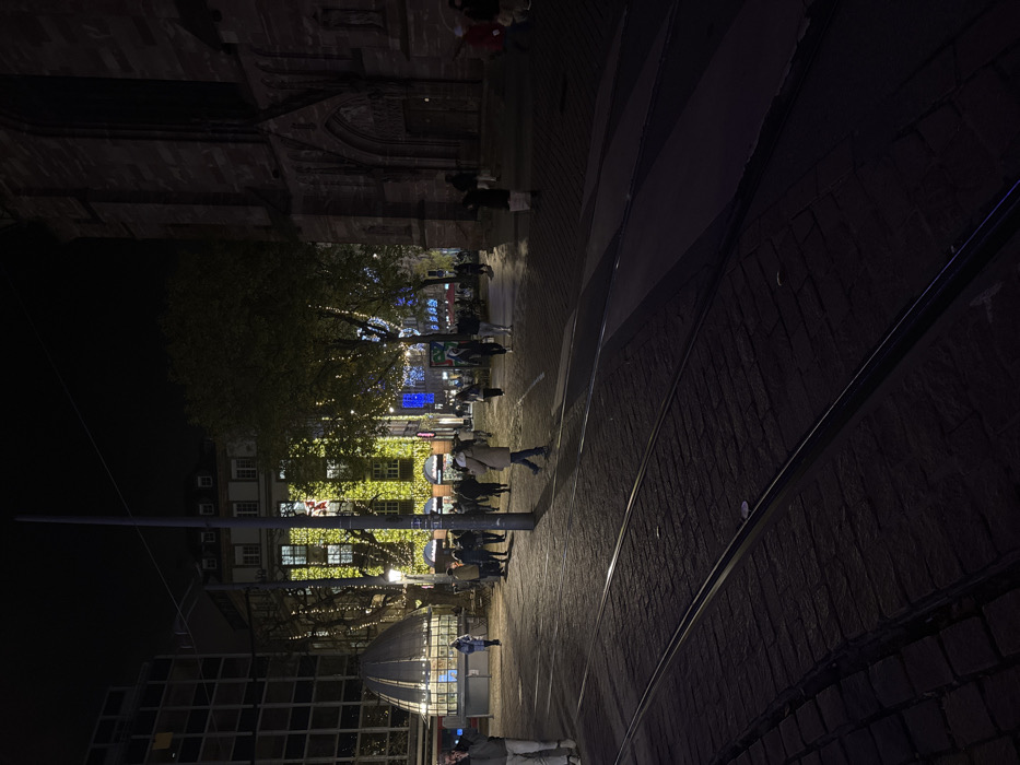 - "An angled street view at night reveals a building with illuminated windows, and trees adorned with festive lights" by FM-pFdZm2, licensed under CC BY 4.0