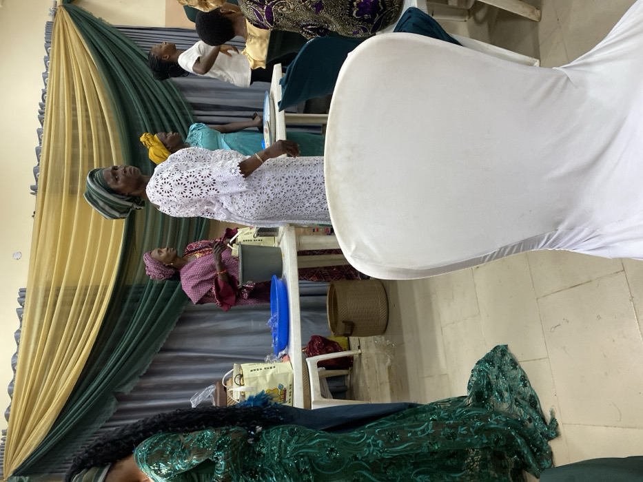 An indoor event space in Ibadan, Nigeria, is depicted with a gathering of individuals