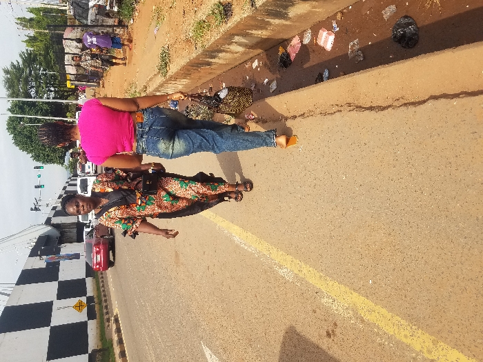 The image captures a daytime urban street scene at the Kwata Flyover in Awka, Anambra State, Nigeria