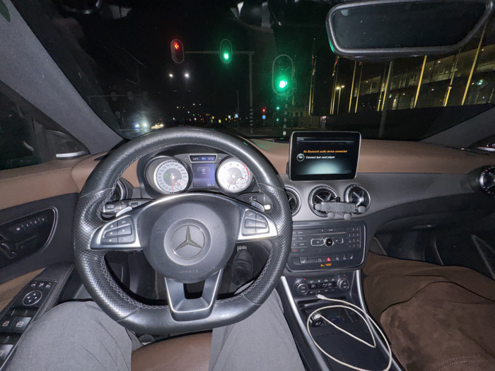 - "The image displays an interior perspective from the driver's seat of a Mercedes-Benz vehicle at night, stationary at a city intersection in Rijswijk, Netherlands" by FM-tMBH83, licensed under CC BY 4.0