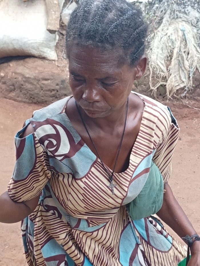 The image depicts an adult female in an outdoor setting in Obosi, Nigeria