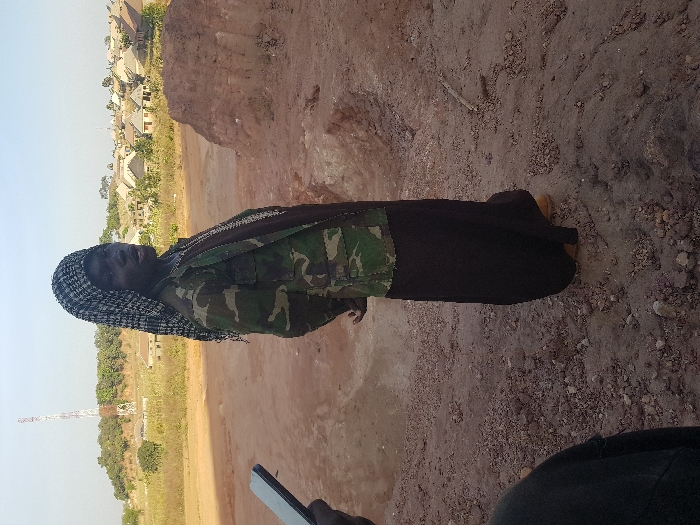 The scene, located in Sabon Gari Nassarawa, Nigeria, depicts an individual standing in an open, unpaved area of reddish-brown soil